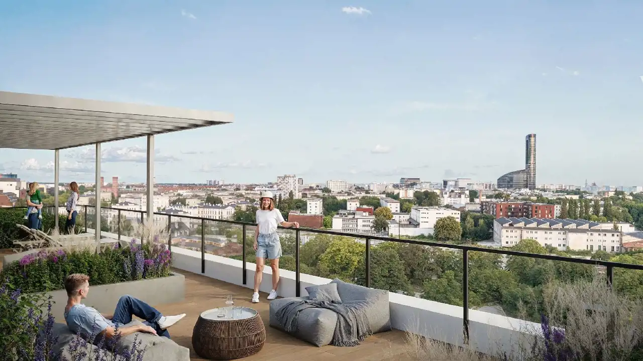 - Duży zielony taras widokowy na dachu do wyłącznej dyspozycji mieszkańców