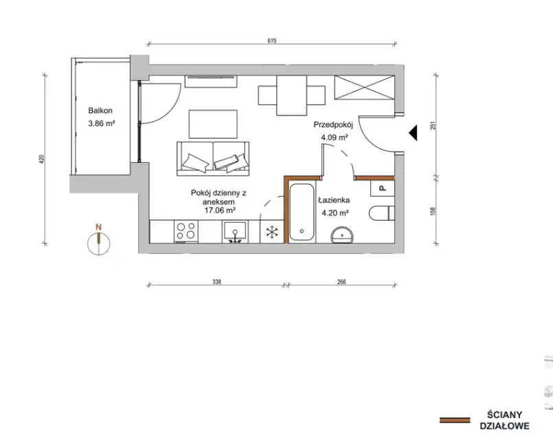 - Charakterystyka mieszkania 25.35 m2, 1 pokój