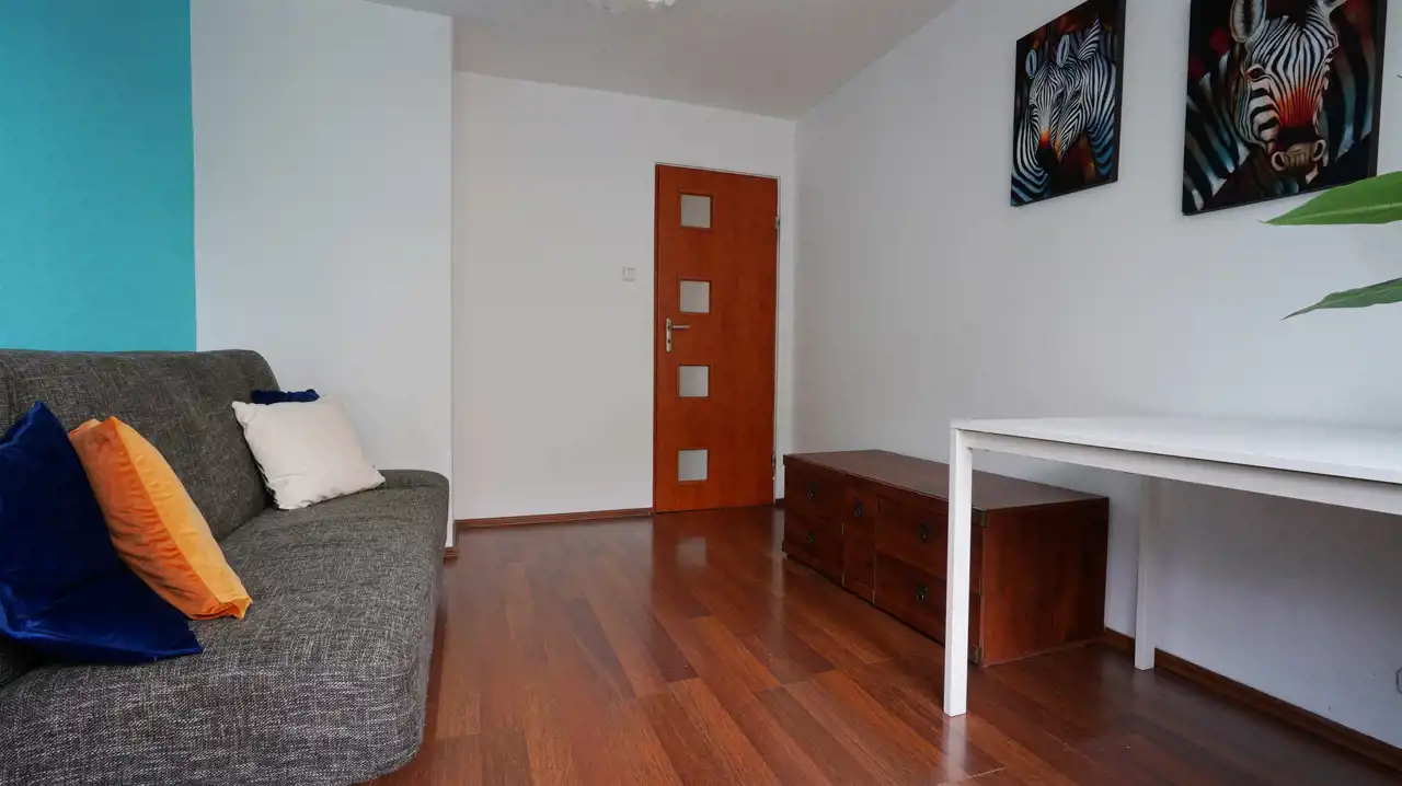 - 2 pokoje ( z większego pokoju jest wyjście na balkon),