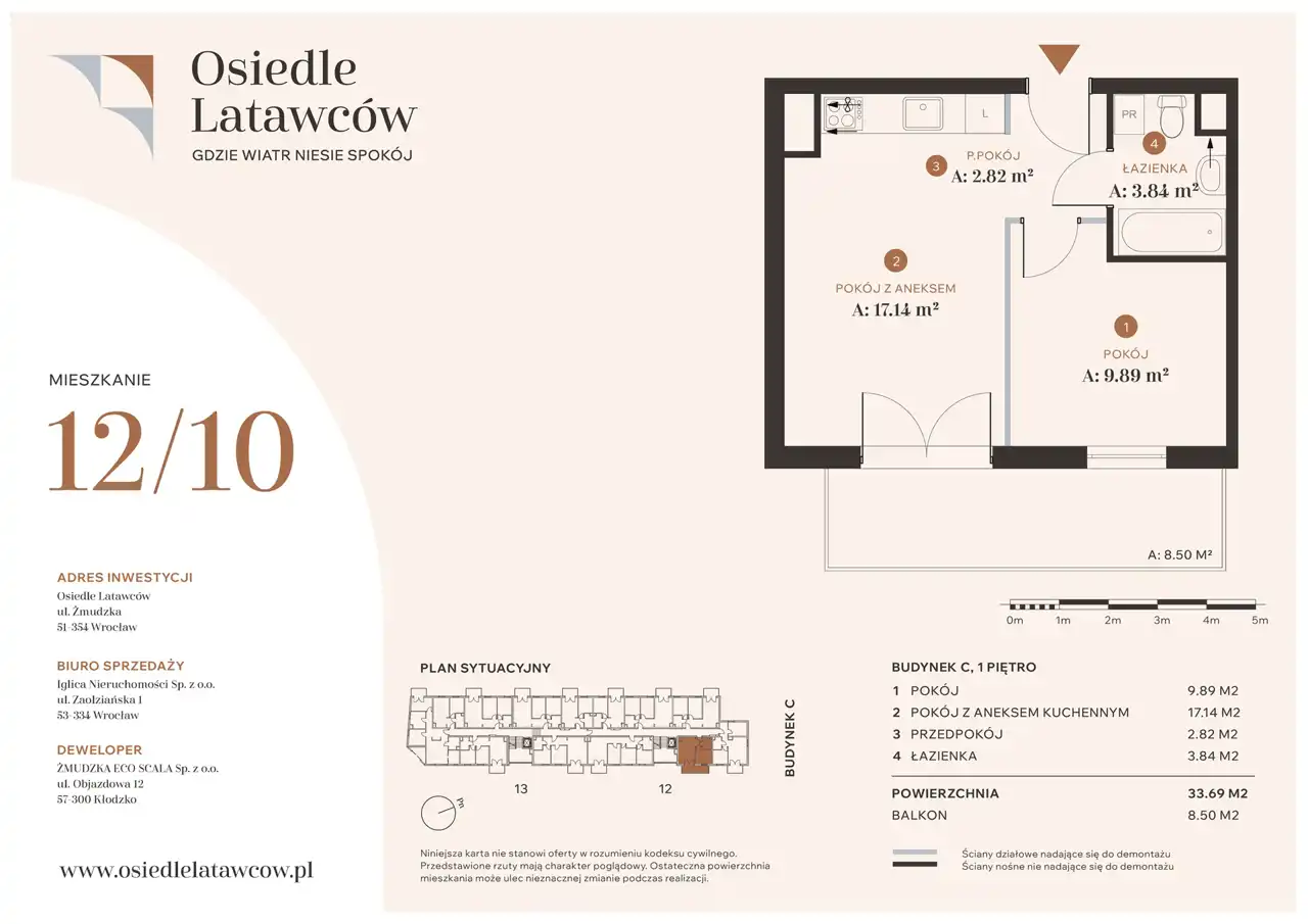 - Charakterystyka mieszkania 33.69 m2, 2 pokoje