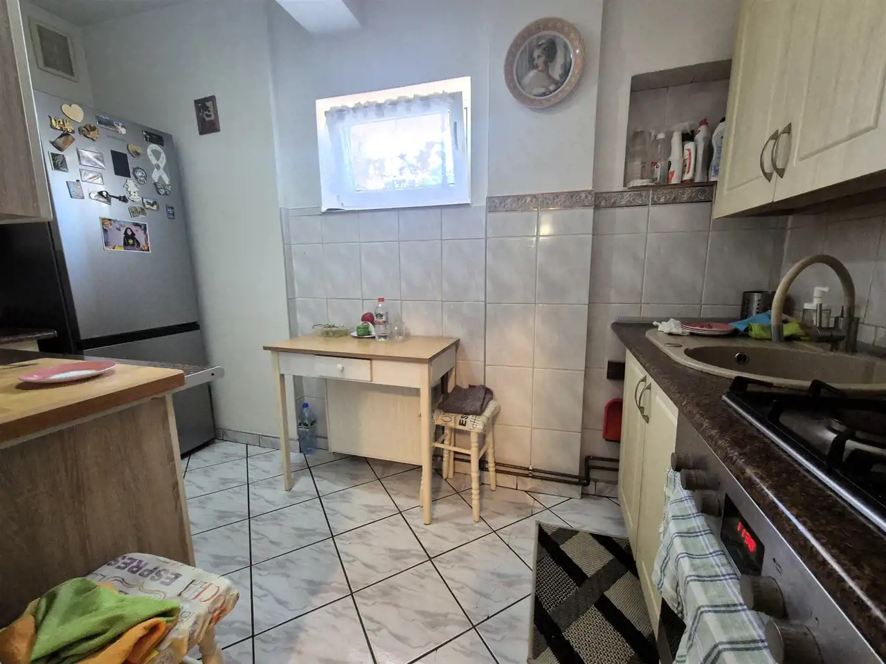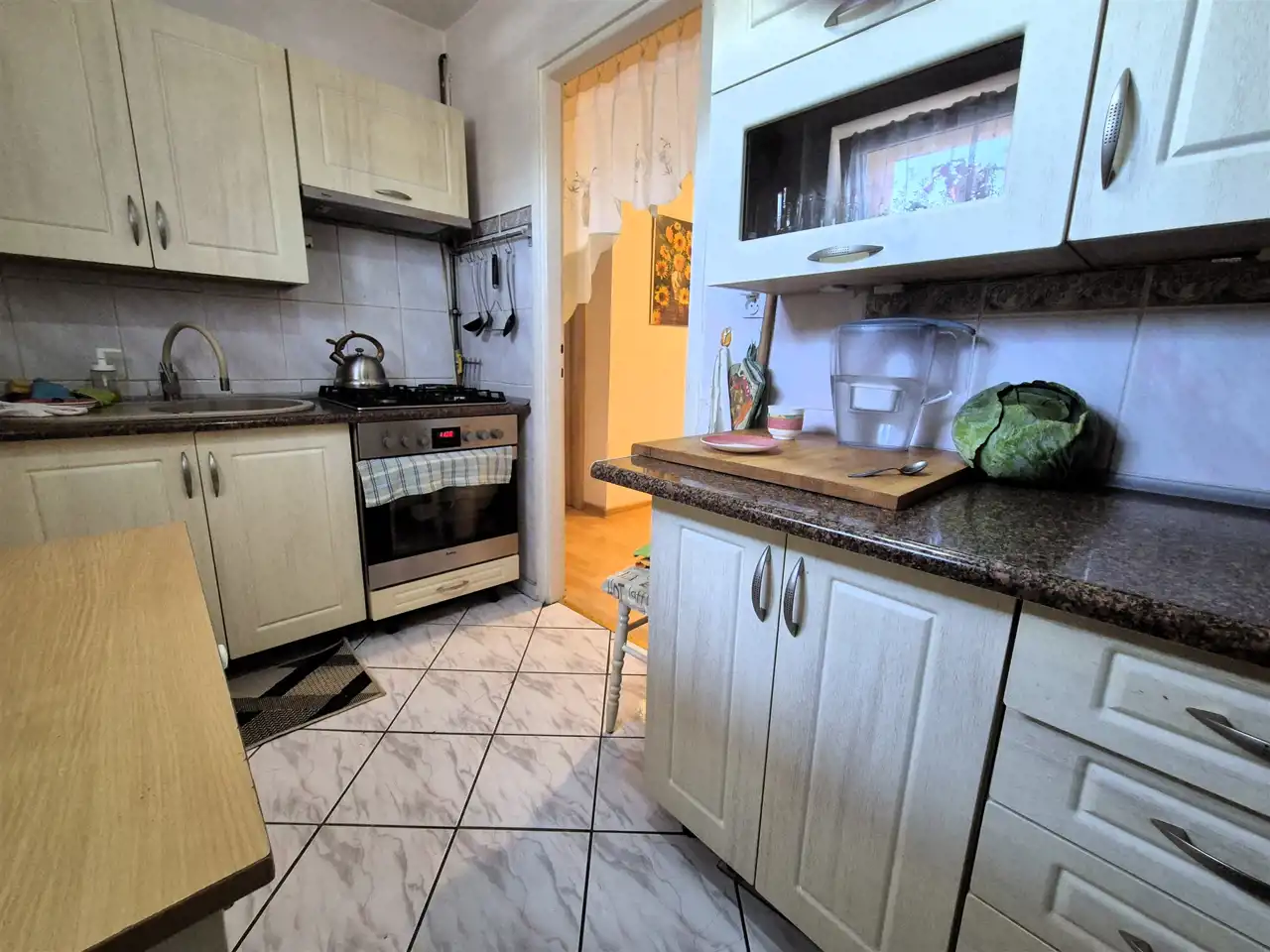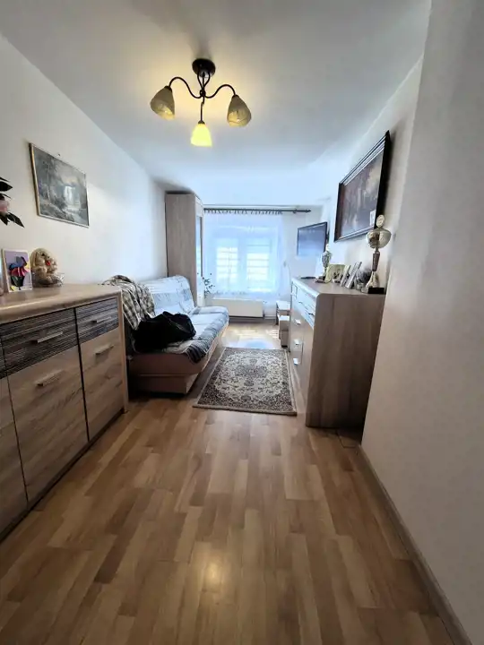Obecnie razem z dzierżawą 1 pokoju i części korytarza są 3 osobne pokoje, kuchnia z meblami kuchennymi i sprzętem AGD z okienkiem.