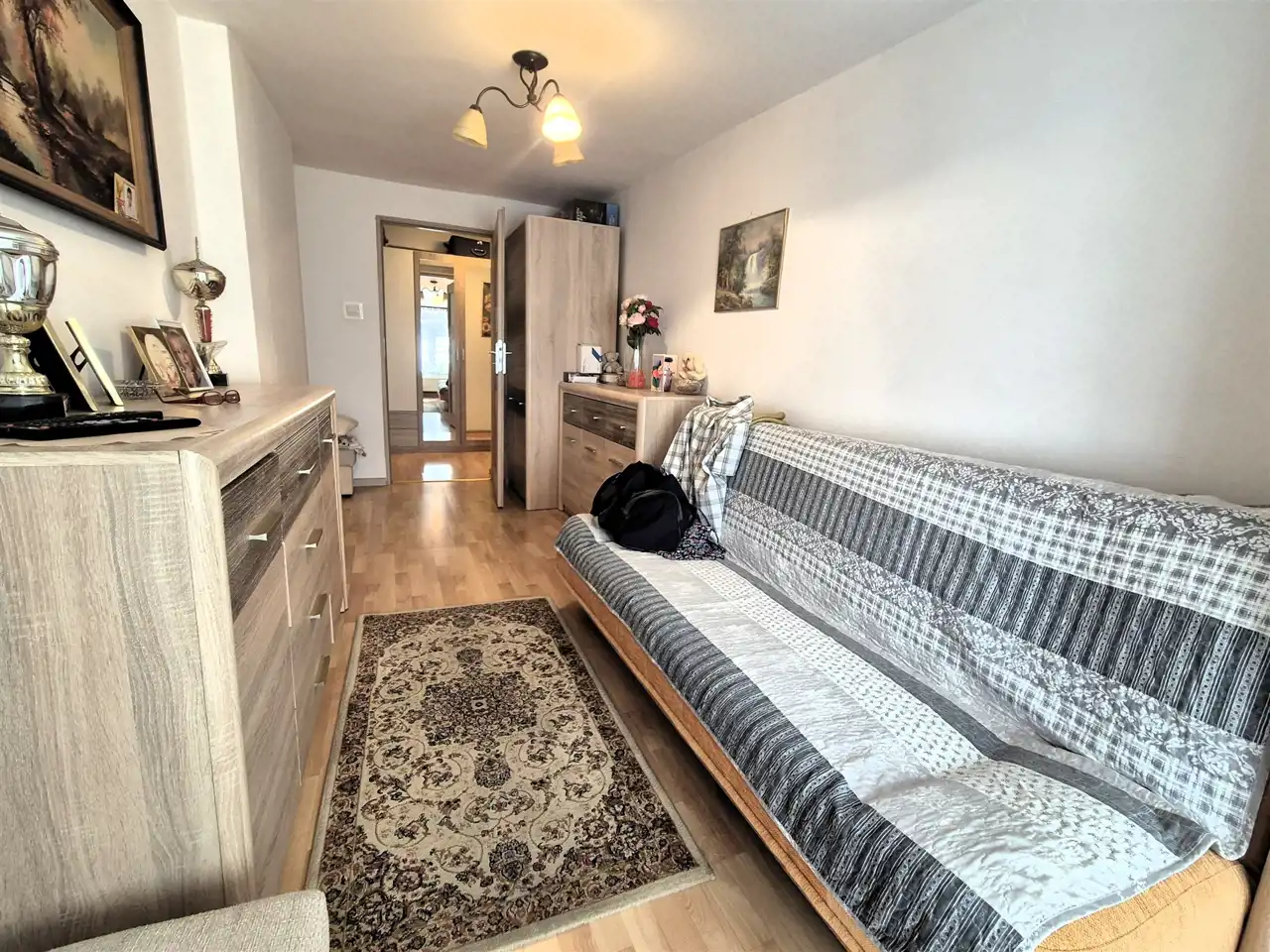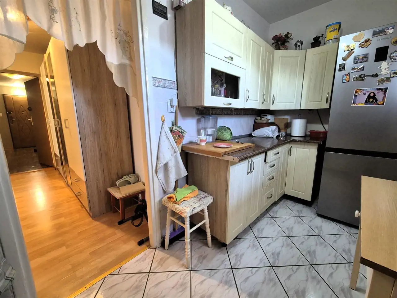 Na korytarzu dodatkowe niewielkie pomieszczenie przynależne do mieszkania.