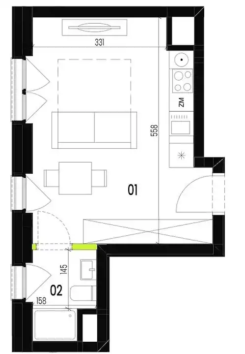 - Charakterystyka mieszkania 25.71 m2, 1 pokój