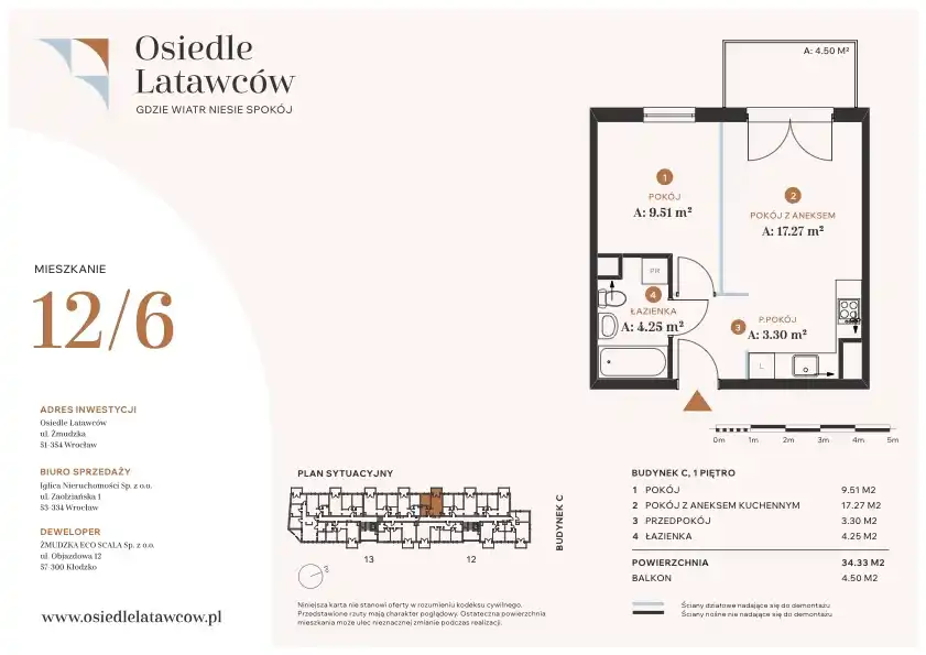 - Charakterystyka mieszkania 34.33 m2, 2 pokoje