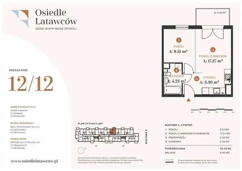 - Charakterystyka mieszkania 34.33 m2, 2 pokoje