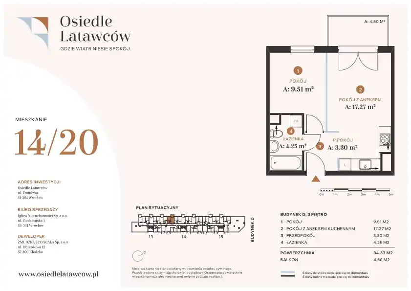 W północnej części Wrocławia, przy ul. Żmudzkiej, powstaje Osiedle Latawców – nowoczesna, kameralna inwestycja mieszkaniowa realizowana przez doświadczonego dewelopera Eco Scala. Projekt obejmuje realizację 121 mieszkań, rozmieszczonych w dwóch eleganckich, trzypiętrowych budynkach o minimalistycznej architekturze.