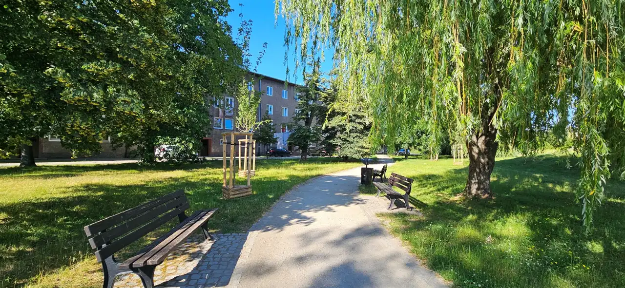 Budynek położony z dala od ruchliwej ulicy, w pobliżu terenów zielonych i spacerowych.