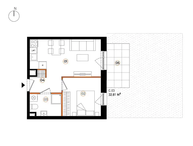 - Charakterystyka mieszkania 32.75 m2, 2 pokoje