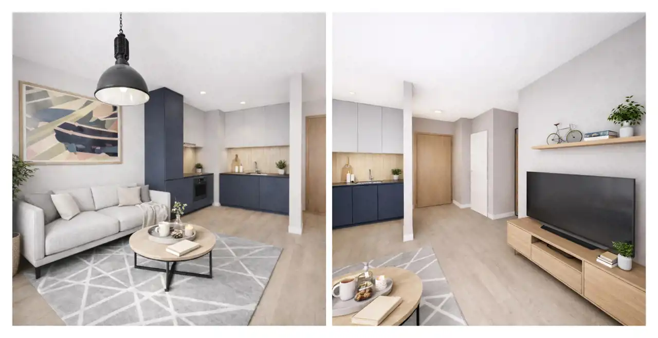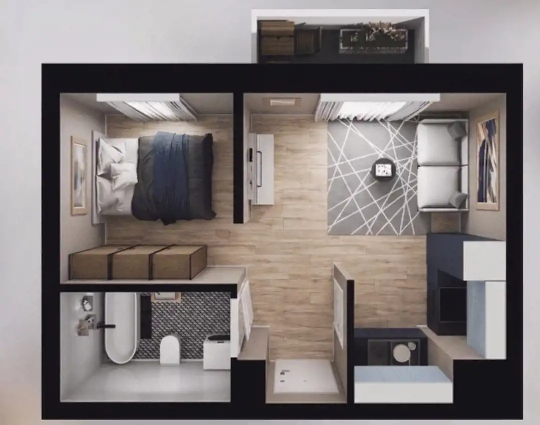 Załączone wizualizacje przedstawiają rzeczywisty układ mieszkania i pokazują możliwość wydzielenia oddzielnej sypialni (funkcjonalne 2 pokoje).