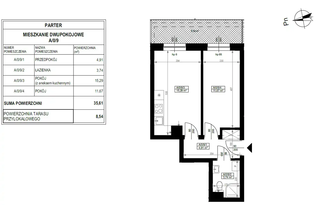 - Charakterystyka mieszkania 35.61 m2, 2 pokoje