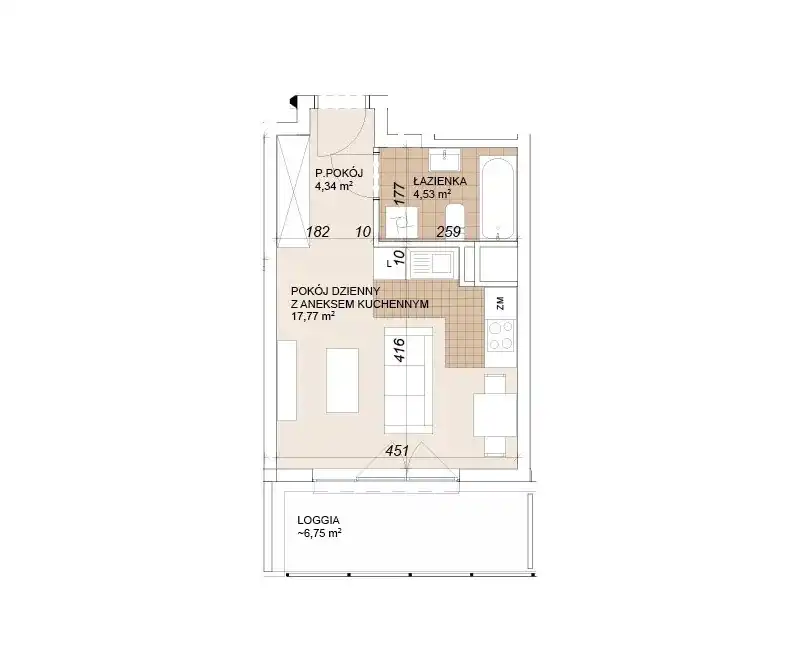 - Charakterystyka mieszkania 26.64 m2, 1 pokój