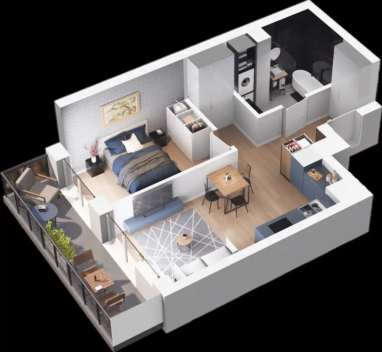 W odznaczających się harmonijną i stonowaną estetyką budynkach powstaną komfortowe i funkcjonalne mieszkania o metrażach od 27 do 120 m² – zarówno mniejsze, jedno- i dwupokojowe, jak również większe: trzy-, cztero-, a nawet pięciopokojowe. Przestronne balkony i tarasy – największe o powierzchni do 76 m², to miejsca szczególne – kawałek własnego nieba w sercu miasta.