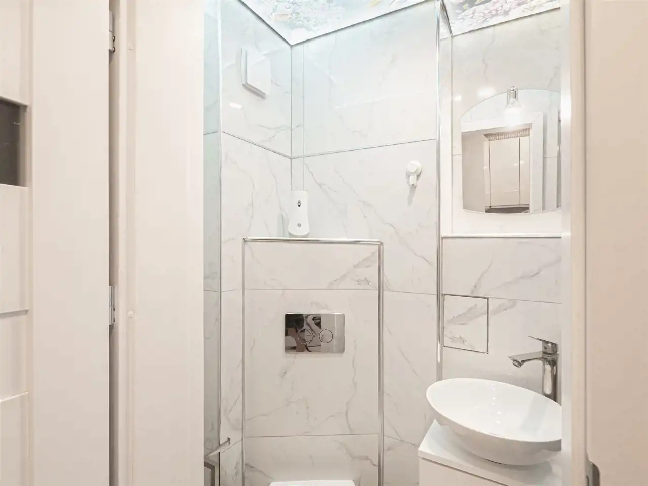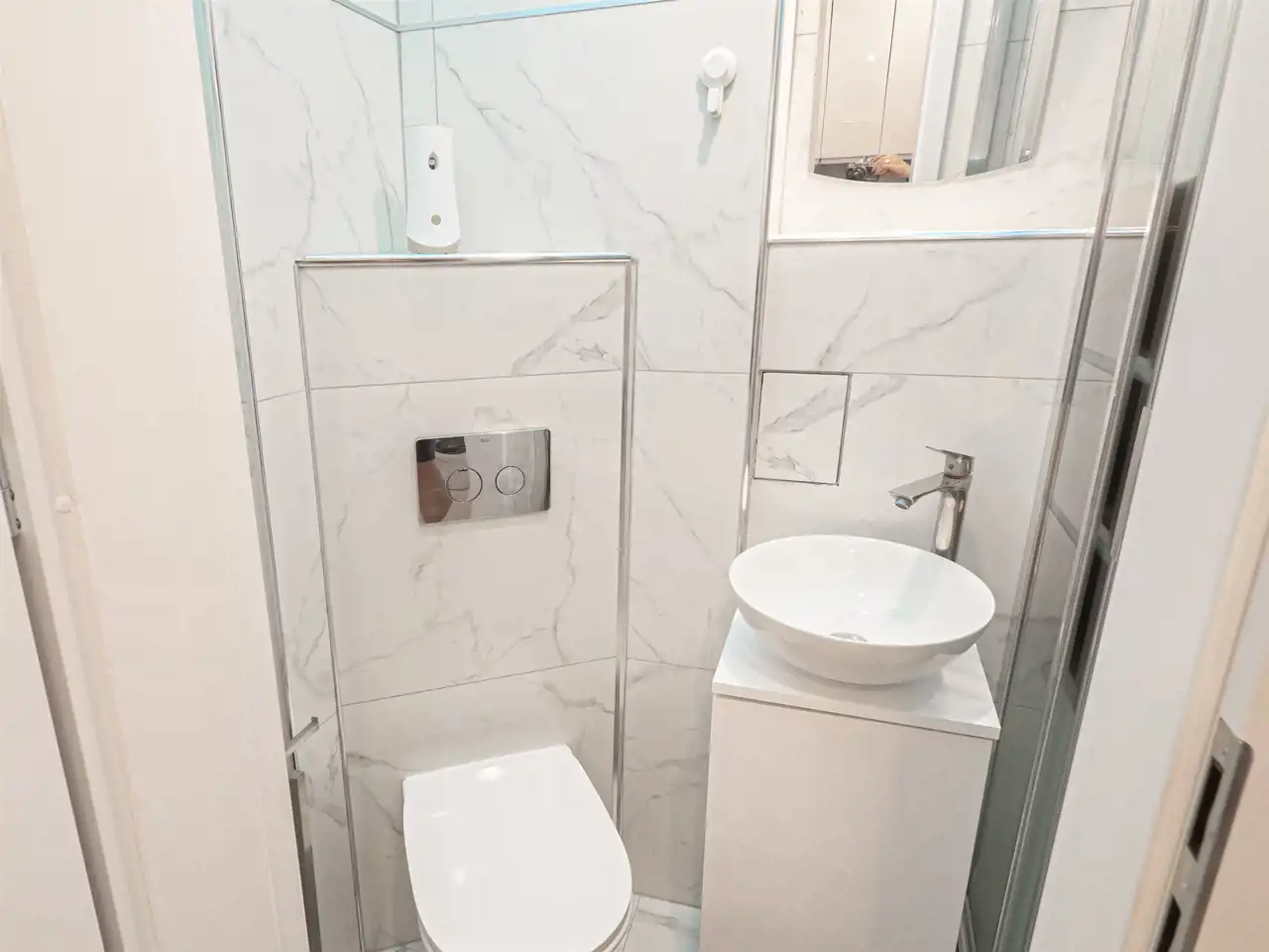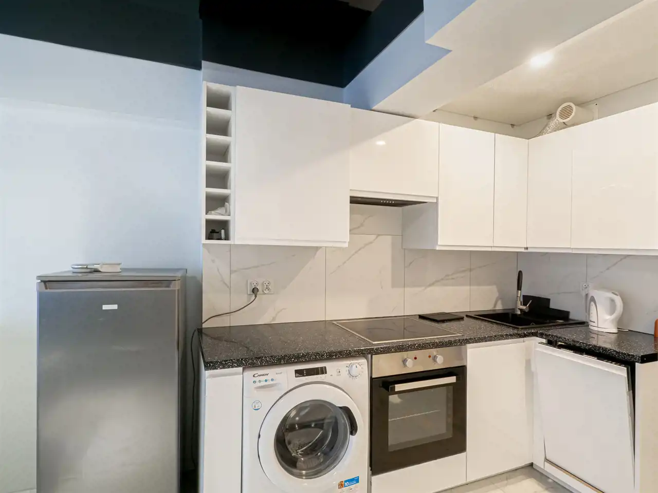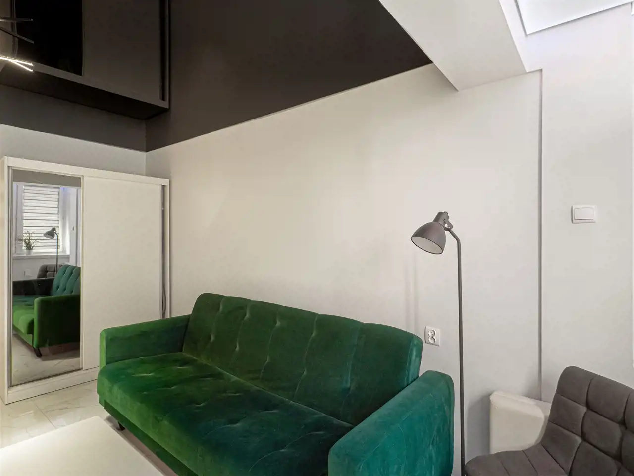 Mieszkanie o powierzchni 27 m2, składa się z salonu z rozkładaną sofą, aneksu kuchennego, przedpokoju, łazienki z prysznicem i WC. W minionym roku przeprowadzony został w nim remont generalny, uwzględniający m.in. wymianę instalacji elektrycznej i wod-kan. Na ścianach położone są gładzie, pytki na podłodze, zamontowano podwieszany sufit. Mieszkanie sprzedawane jest z całym wyposażeniem i meblami.