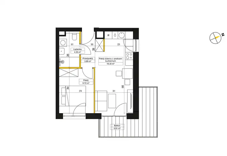 - Charakterystyka mieszkania 36.26 m2, 2 pokoje