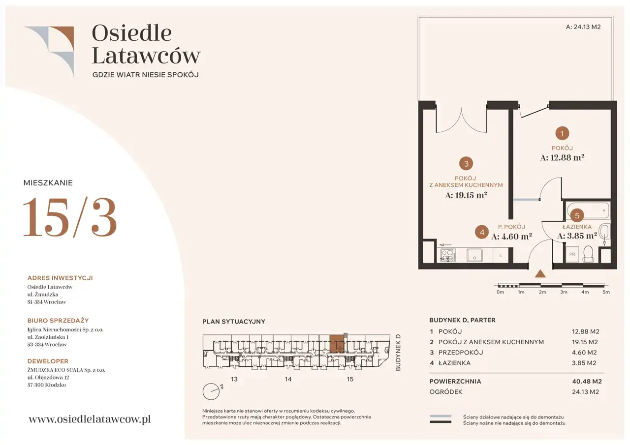 - Charakterystyka mieszkania 40.48 m2, 2 pokoje