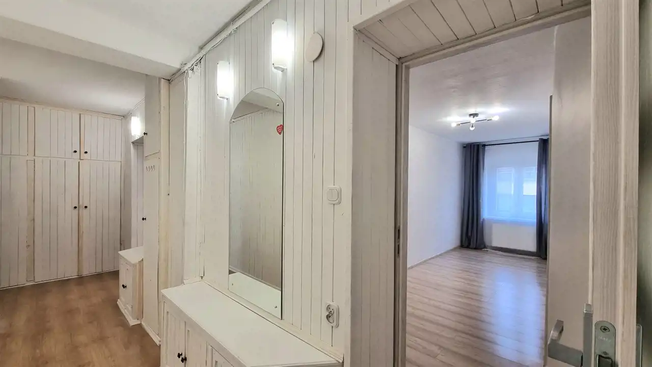 - Ogrzewanie gazowe – ekonomiczny piec dwufunkcyjny, kaloryfery w pokojach.