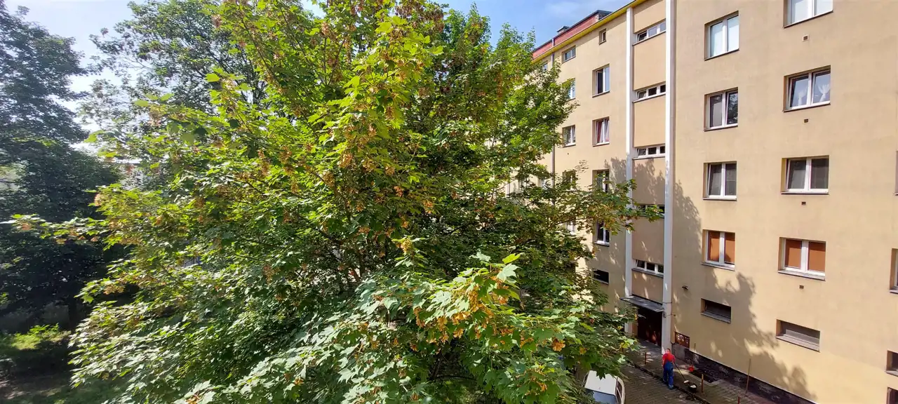 Pomimo lokalizacji mieszkania praktycznie w samym centrum Wrocławia jest ono ciche i słoneczne, a okna wychodzą na zielony skwer.