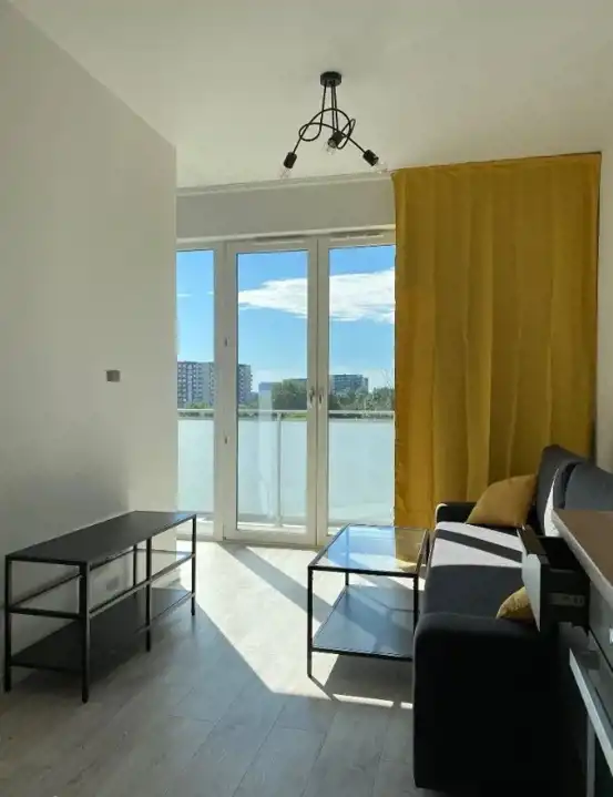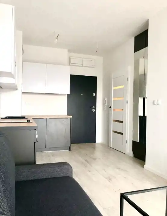Mieszkanie jasne, ustawne. Funkcjonalny pokój dzienny z aneksem kuchennym, wraz z niezbędnymi sprzętami AGD.