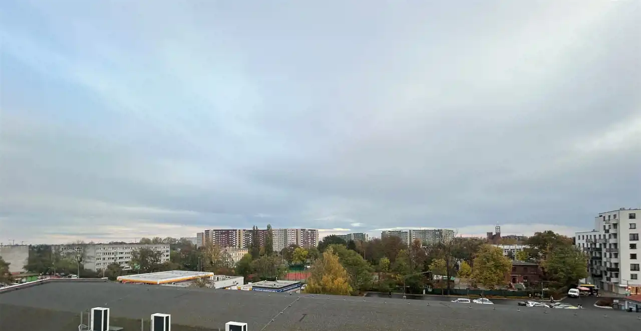 Cicha i spokojna okolica. Widok na panoramę miasta.