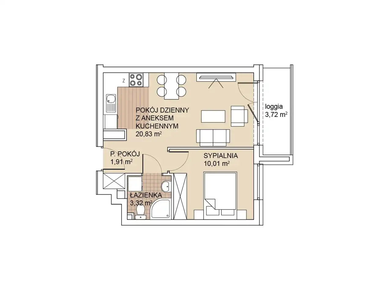 - Charakterystyka mieszkania 36.1 m2, 2 pokoje