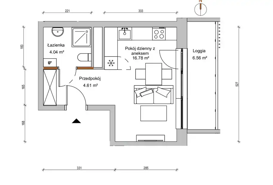 - Charakterystyka mieszkania 22.43 m2, 1 pokój