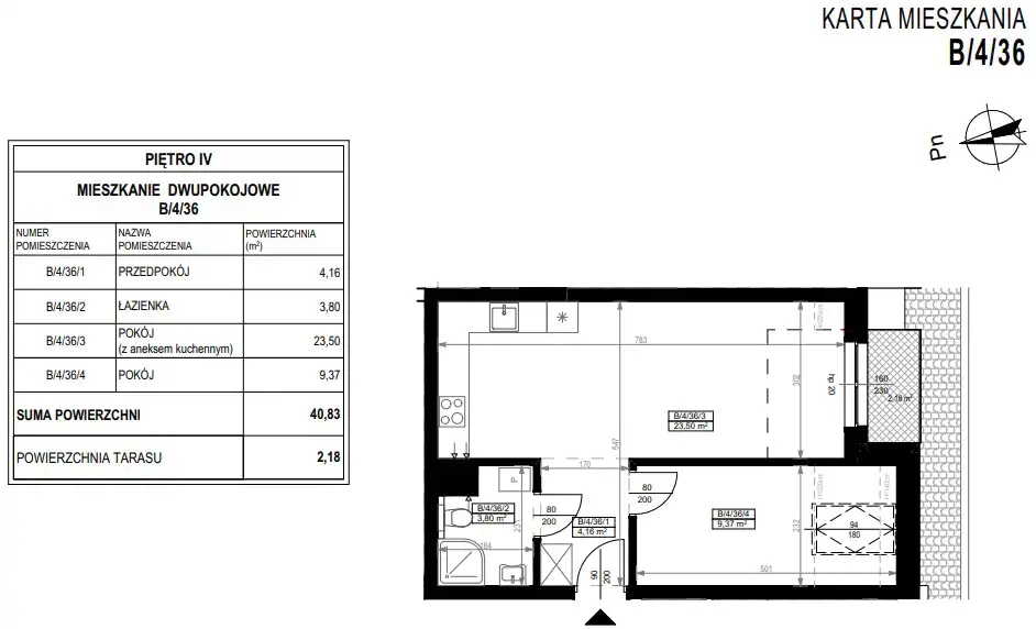 - Charakterystyka mieszkania 40.83 m2, 2 pokoje