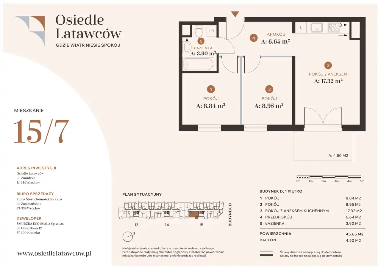 - Charakterystyka mieszkania 45.65 m2, 3 pokoje