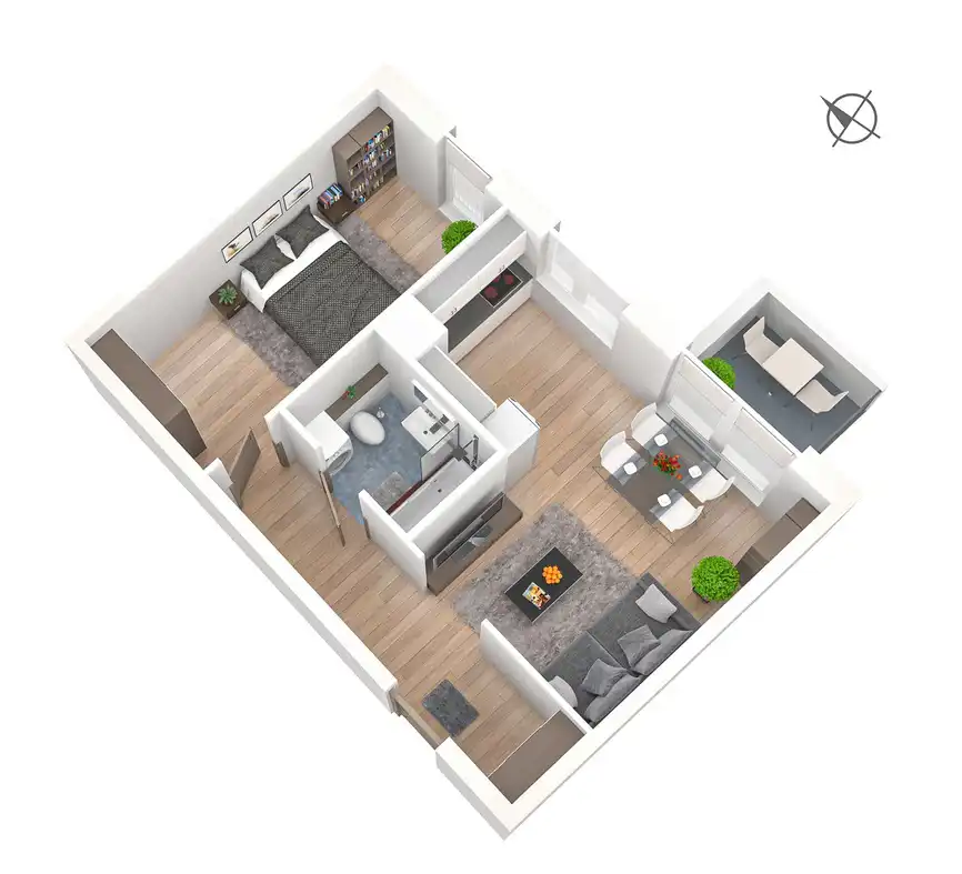 - Charakterystyka mieszkania 42.94 m2, 2 pokoje