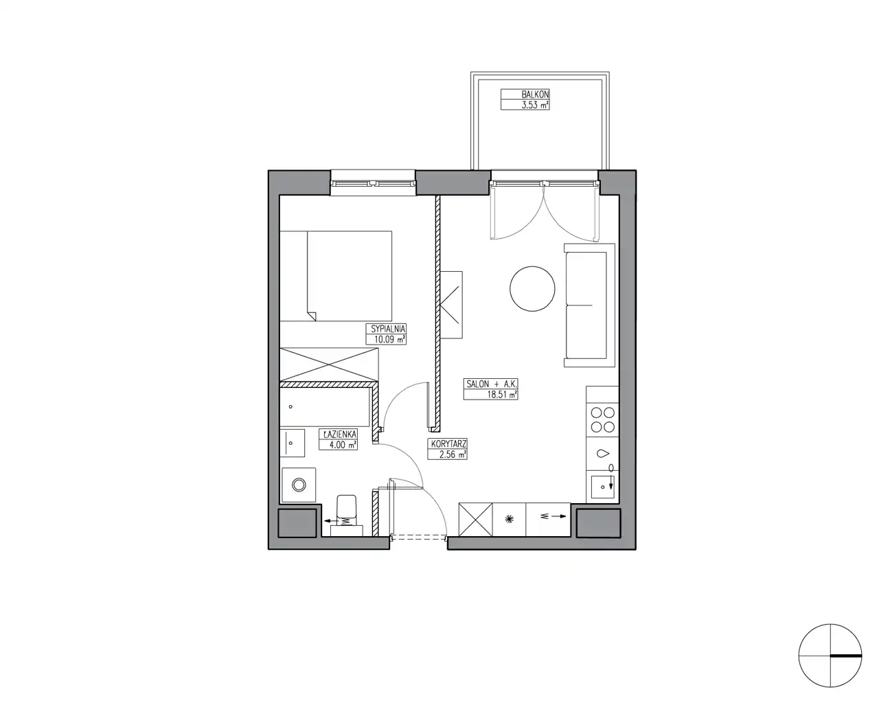 - Charakterystyka mieszkania 35.16 m2, 2 pokoje