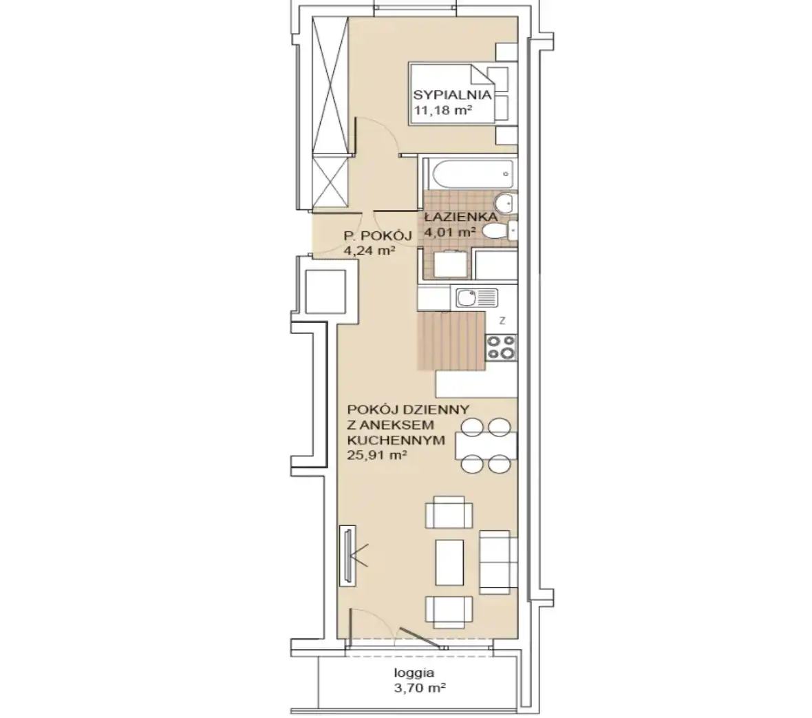 - Rozkład mieszkania 1p piętro