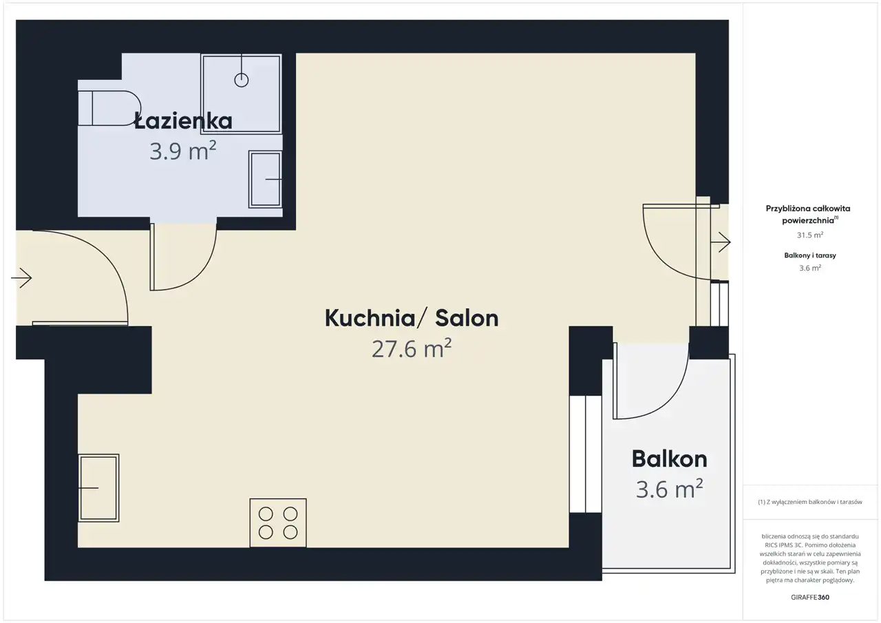 - Charakterystyka mieszkania 31.81 m2, 1 pokój