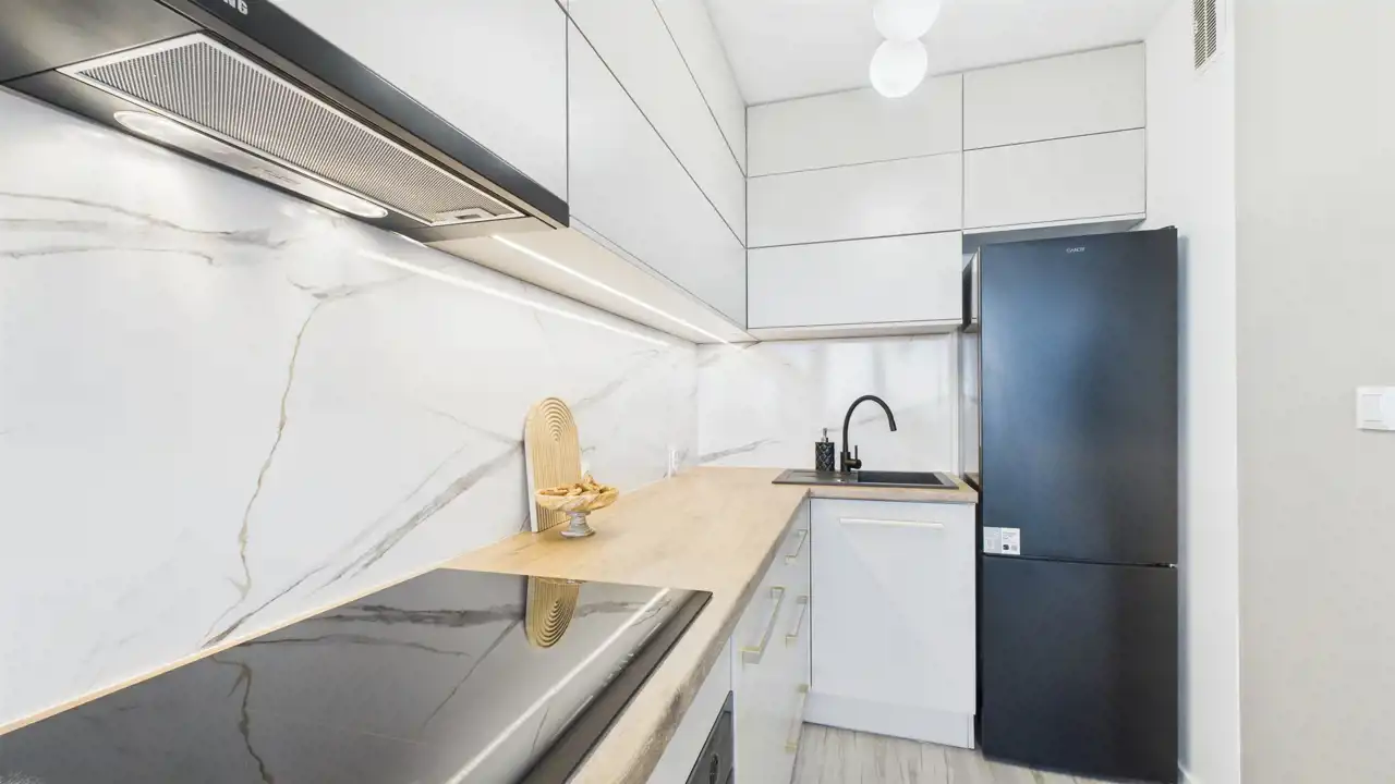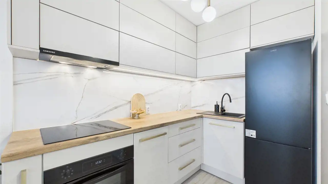 Pełne wyposażenie mieszkania (AGD, meble w zabudowie),