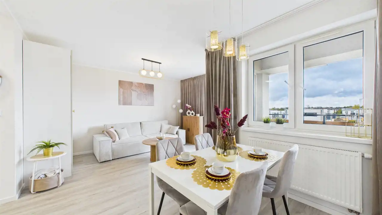 Ekspozycja okien na wschód sprawia, że mieszkanie jest pełne naturalnego światła, a jednocześnie bardzo ciche – z dala od ulicznego zgiełku. To idealne miejsce do odpoczynku i pracy w domowym zaciszu.