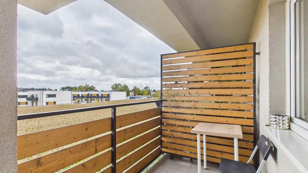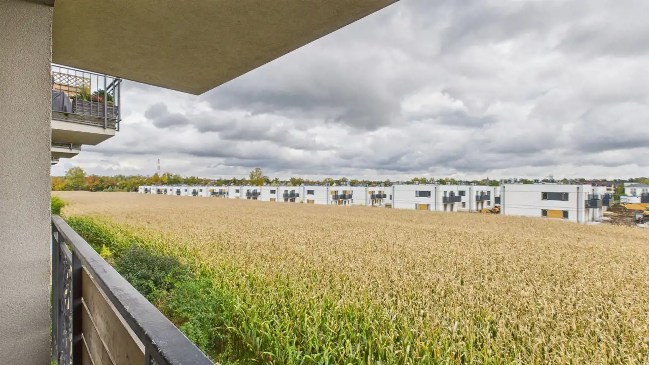 balkon z pięknym widokiem na pola i otwartą przestrzeń.
