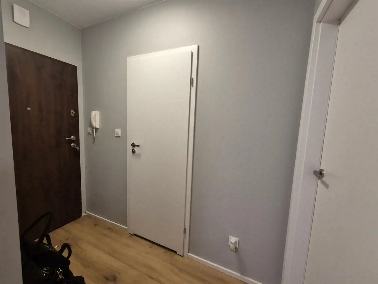 W przedpokoju szafa w zabudowie.
