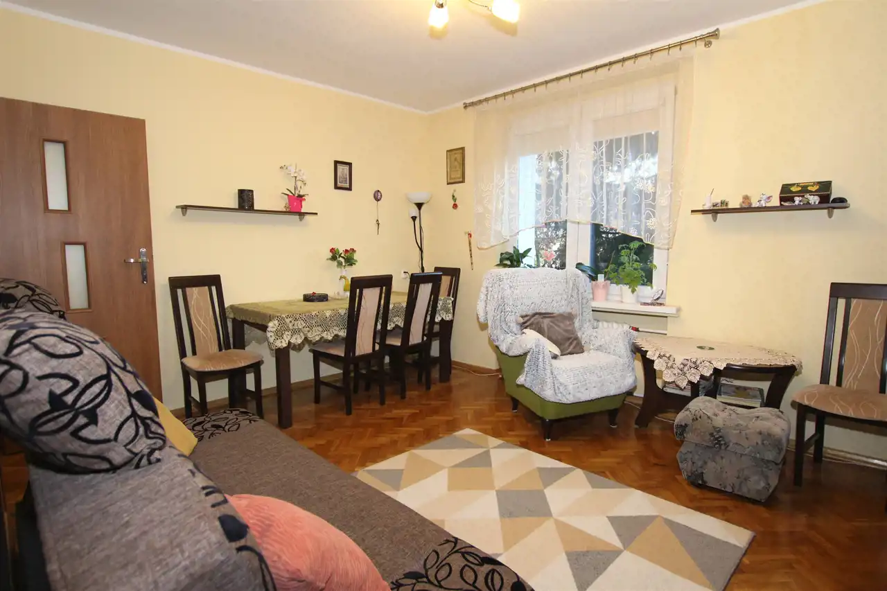- mieszkanie składa się z : dużego pokoju z wyjściem na balkon, sypialni, osobnej jasnej kuchni z oknem, łazienki z wc, przedpokoju.