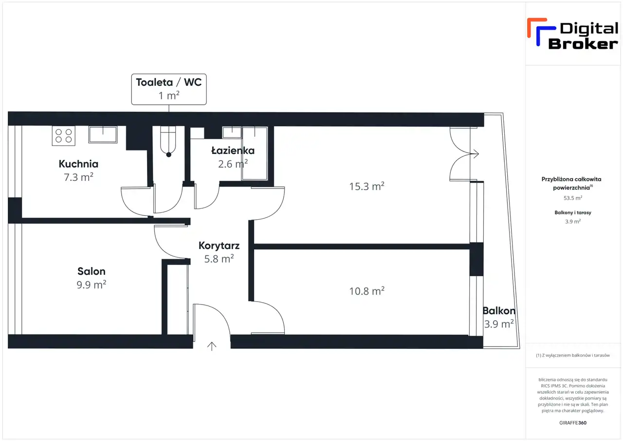 - Charakterystyka mieszkania 54.1 m2, 3 pokoje