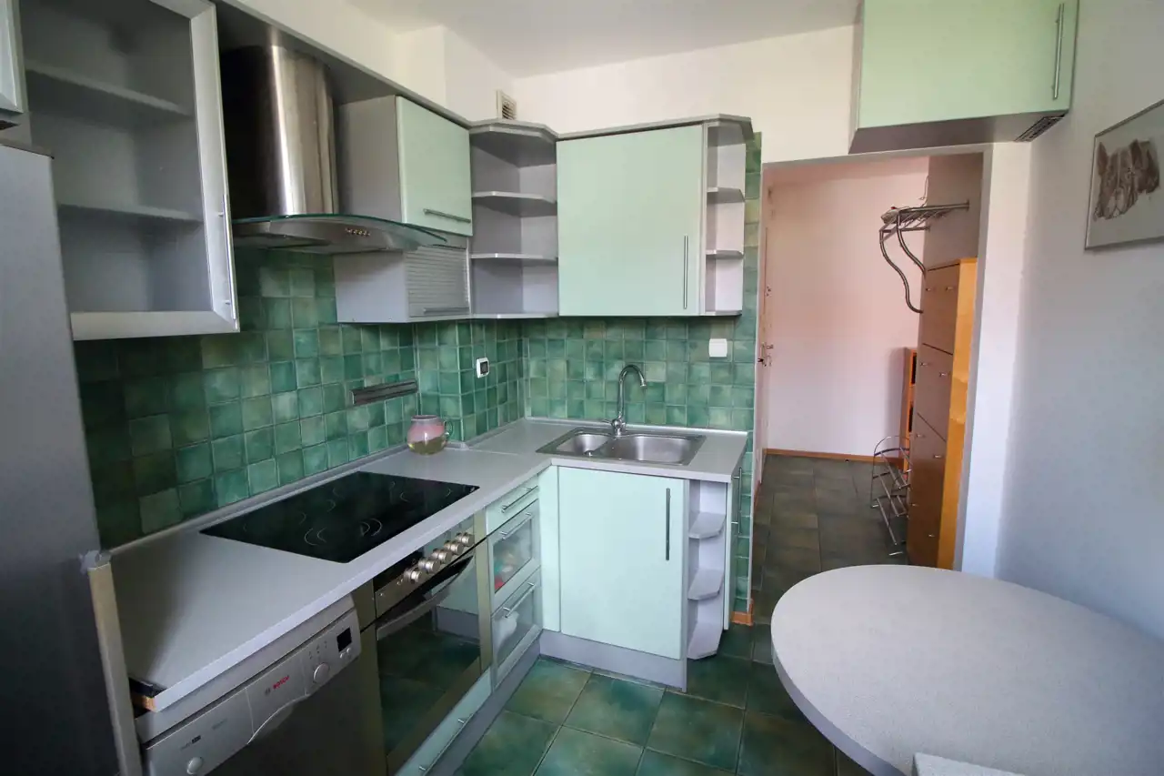 Mieszkanie jest dobre utrzymane. W pełni umeblowane i gotowe do zamieszkania bez dodatkowych nakładów finansowych. Okna PCV z zewnętrznymi roletami. Na podłodze panele oraz terakota. Ściany świeżo odmalowane. Funkcjonalny układ pomieszczeń. Mieszkanie jednostronne z wystawą okienną na zachód. Okna od strony cichego patio.