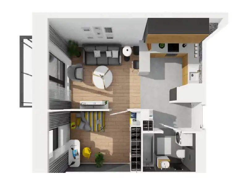 - Charakterystyka mieszkania 35.63 m2, 2 pokoje