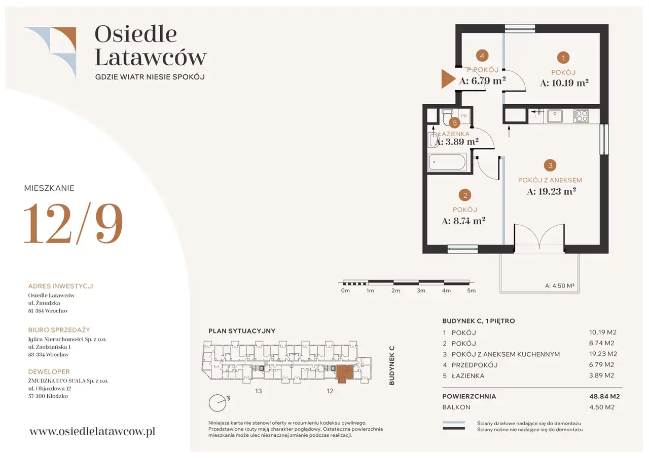 - Charakterystyka mieszkania 48.84 m2, 3 pokoje