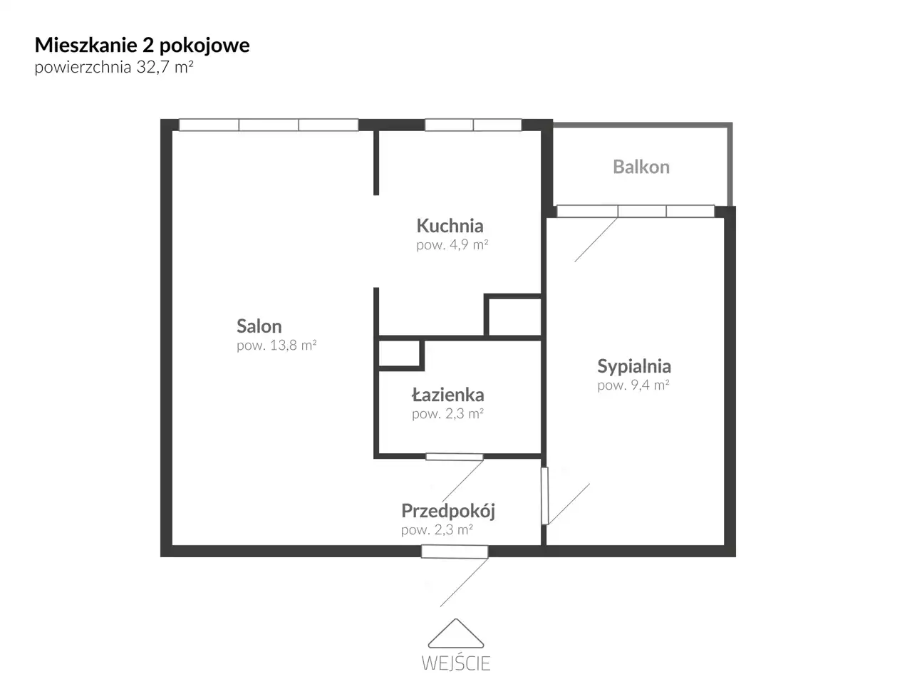 - Charakterystyka mieszkania 34 m2, 2 pokoje