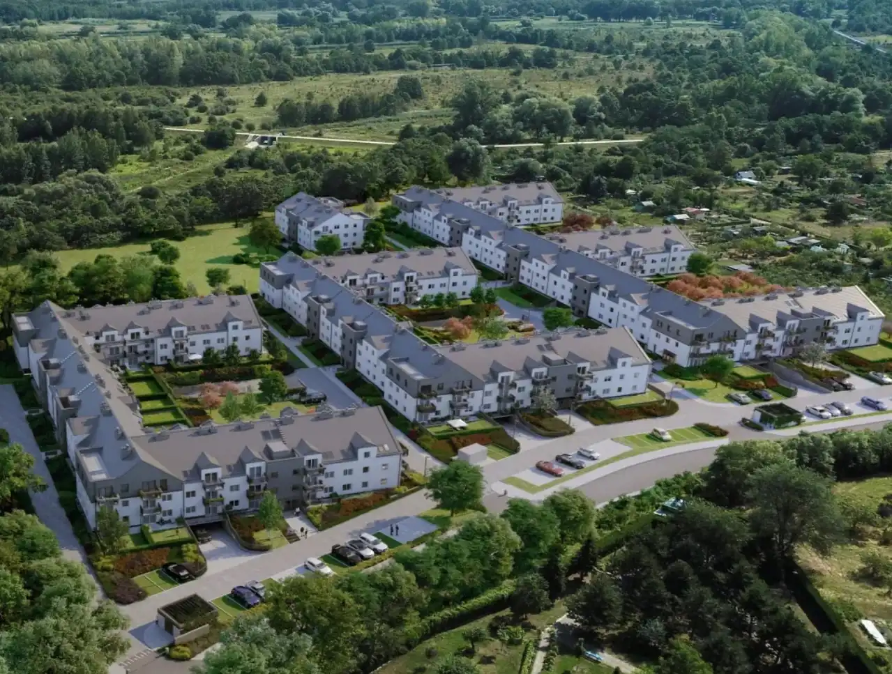 Wśród dostojnych dębów, blisko terenów zielonych krajobrazu chronionego Natura 2000 i rzeki Zielonej znajdziesz zdrowe miejsce do życia, spokój i niedużą społeczność w czterech 3-kondygnacyjnych budynkach z pełną infrastrukturą - alejkami, bogactwem roślin czy atrakcyjnymi częściami do wyłącznego użytku mieszkańców. Zieleń przewija się zatem w aranżacji terenu, w miejscach aktywności oraz tuż za granicą osiedla. Projekt zachowuje ponadstandardowe odległości między budynkami i ekspozycje z okien na zielony horyzont.