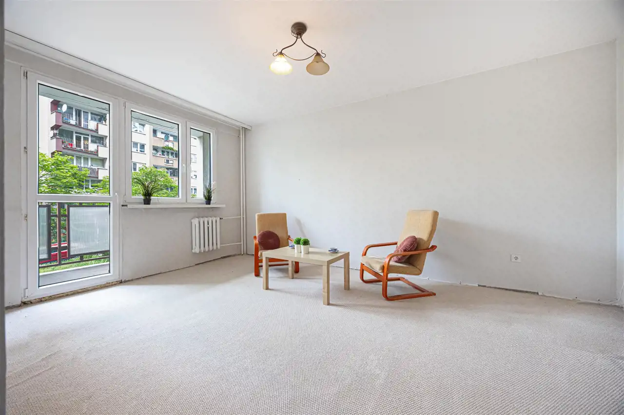 Przedstawiam 2 pokojowe mieszkanie z balkonem, zlokalizowane na pierwszym piętrze w budynku z 1990 roku przy ul. Grabiszyńskiej we Wrocławiu.