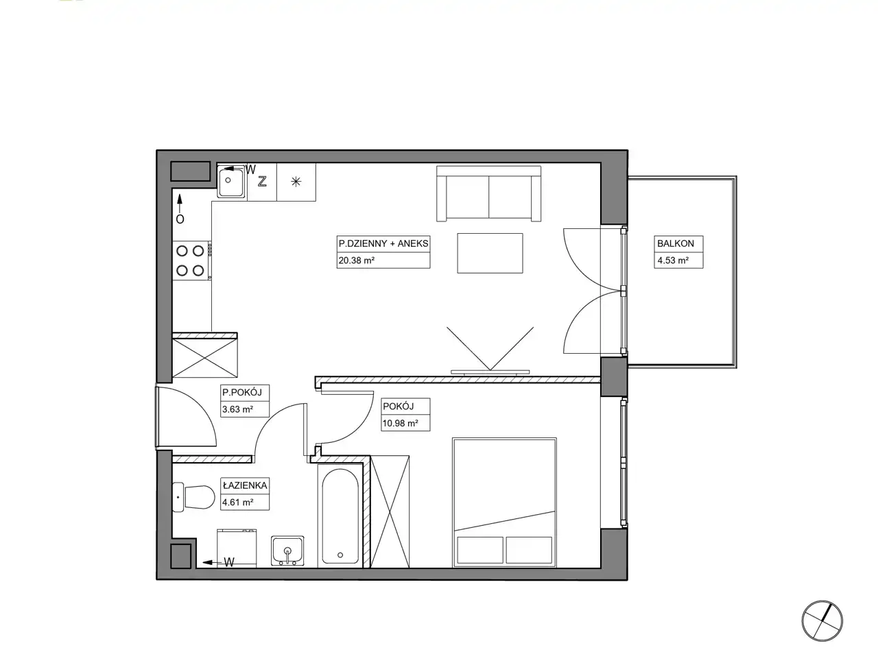 - Charakterystyka mieszkania 39.31 m2, 2 pokoje