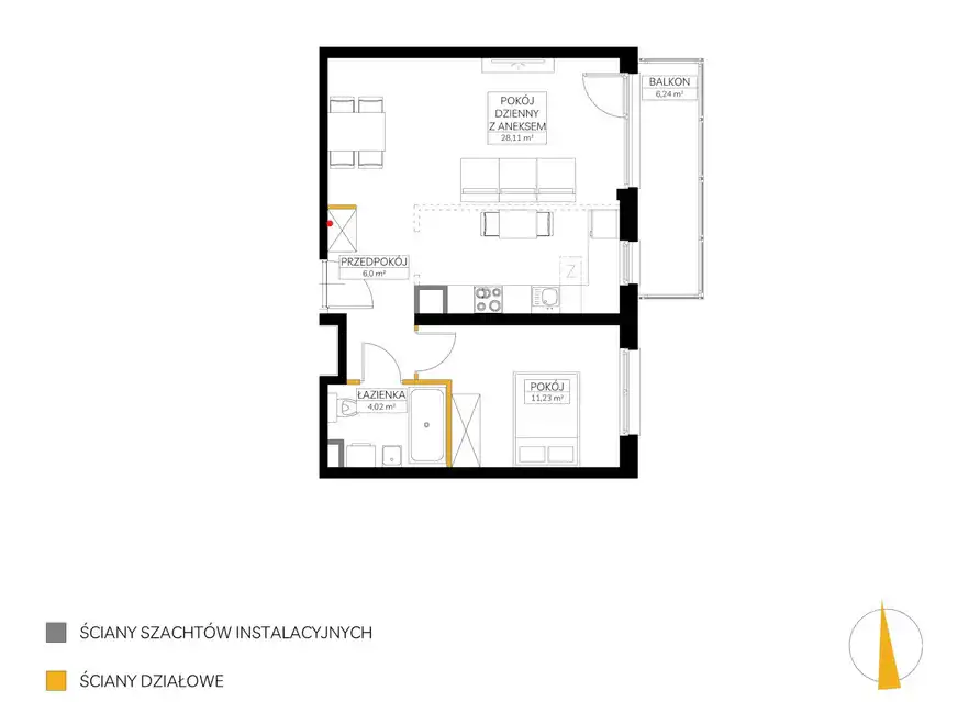 - Charakterystyka mieszkania 49.36 m2, 2 pokoje
