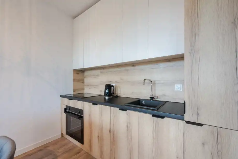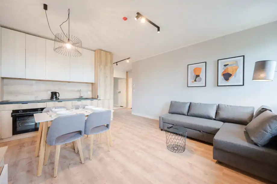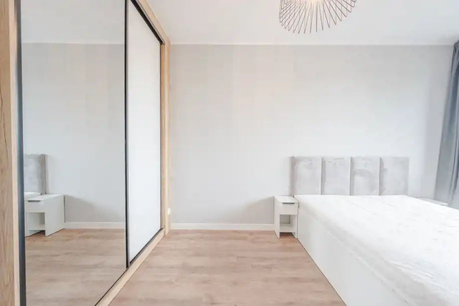 Lokal- o powierzchni 38,4 m² składa się z dwóch pokoi, w tym przestronnego salonu połączonego z aneksem kuchennym, dużej sypialni, korytarza oraz łazienki. Mieszkanie jest funkcjonalne i dobrze doświetlone. Lokal jest w pełni wyposażony. Aneks kuchenny wykonany pod wymiar z zabudowanymi sprzętami AGD. Łazienka wykończona nowocześnie z dużą kabiną prysznicową. Dla pełnego komfortu zamontowano klimatyzacje. Do mieszkania przynależy miejsce w hali garażowej. Ogrzewanie miejskie.