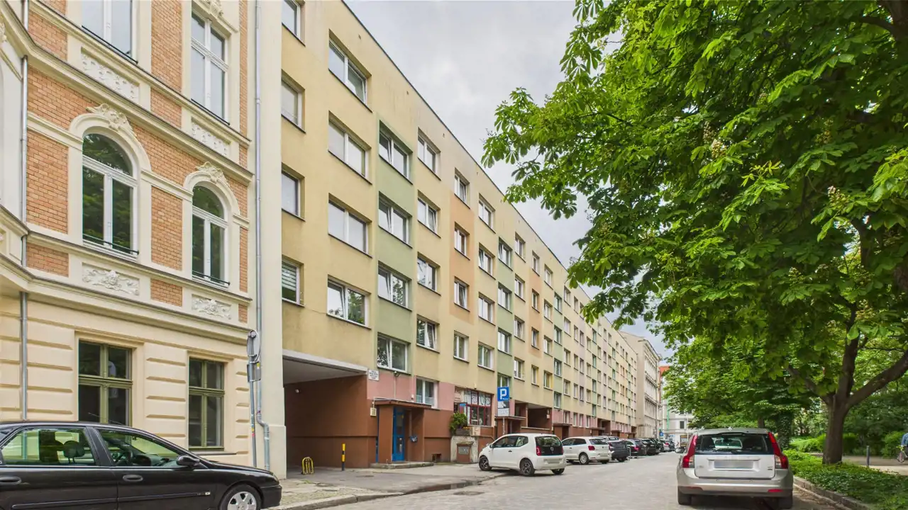 Mimo bliskości centrum, mieszkanie znajduje się przy kameralnej ulicy – cisza, zieleń i sąsiedzka atmosfera. -