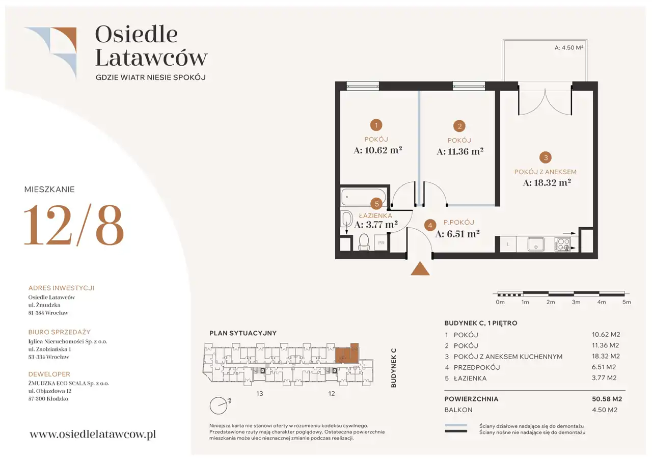 - Charakterystyka mieszkania 50.58 m2, 3 pokoje