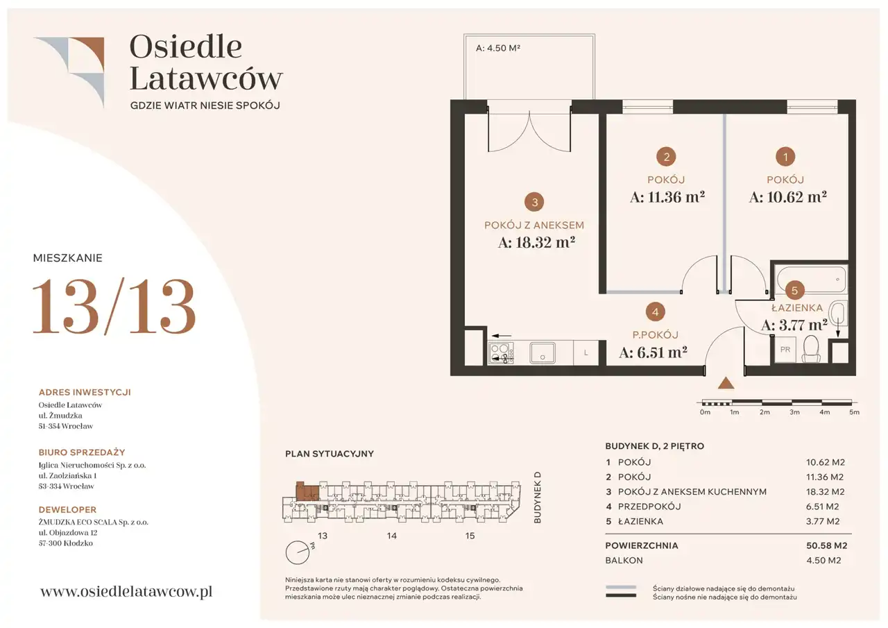 - Charakterystyka mieszkania 50.58 m2, 3 pokoje