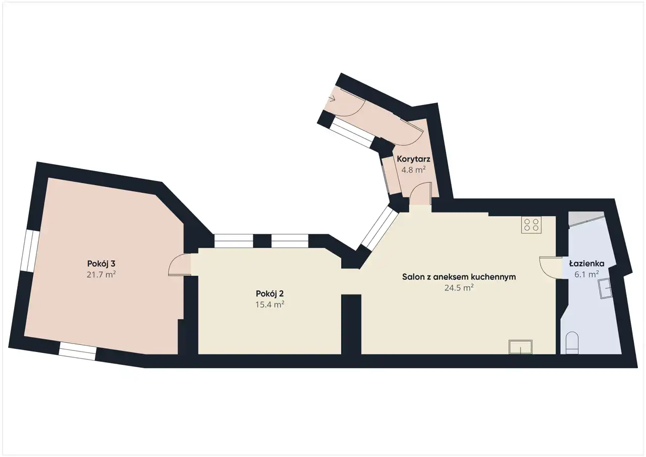 - Charakterystyka mieszkania 72.5 m2, 2 pokoje